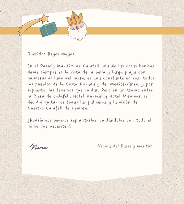 Carta als reis mags de part de la Núria, veïna de Calafell